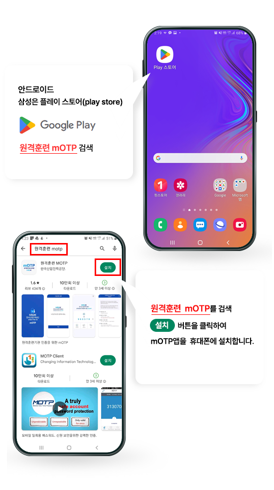 원격훈련 mOTP를 검색하여 설치합니다.